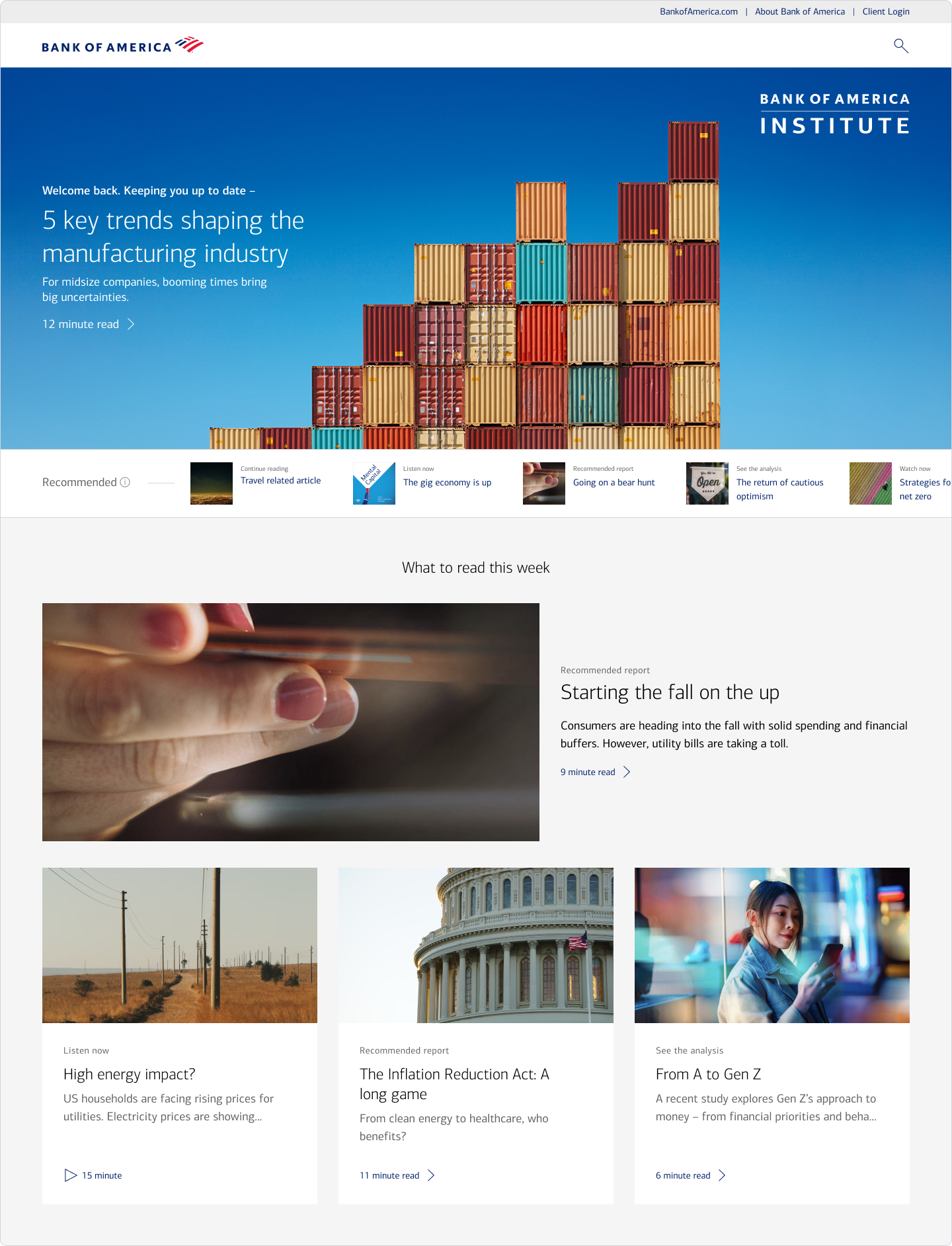 We had 2 weeks to complete a Northstar vision project. It was myself and 2 other designers on the team who created all of this work. With it being a Northstar, we had much more freedom to create components and push the boundaries of what other BofA work is doing currently.